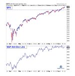 Attenzione! L’S&P 500 ha fatto nuovi massimi ma l’Advance/Decline Line è in ritardo. Pochi titoli (Mag 7) hanno trainato il rialzo di recente. – S&P 500 new highs, yet A/D line lagging.