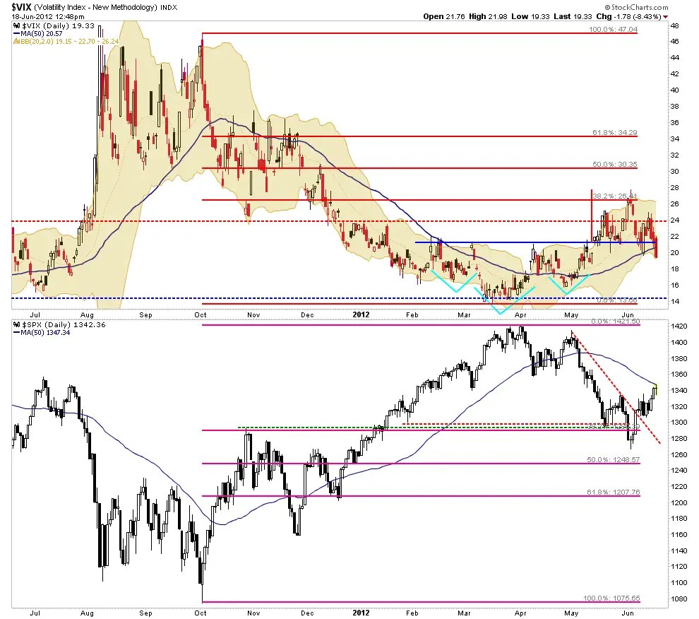 Nonostante l’indecisione dell’S&P 500 nel superare la sua media mobile a 50 giorni, segnando una variazione per ora quasi nulla, oggi l’indice della volatilità sulle opzioni dell’S&P 500 (VIX) è in netto calo.