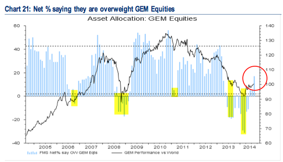 All’inzio di ogni mese il sondaggio di Bank of America Merrill Lynch fornisce una fotografia di come sono posizionati i gestori di fondi sulle principali asset class d’investimento.