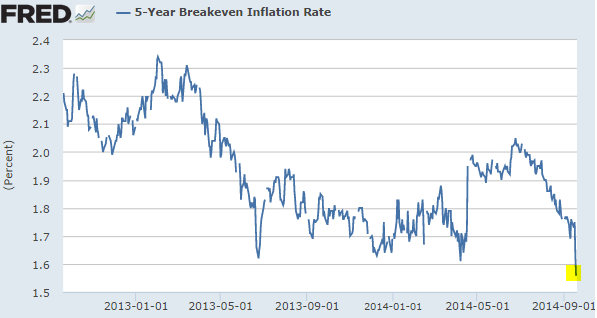 Le materie prime, dopo il recupero nel 1° semestre, si stanno di nuovo affossando, colpa del rallentamento della crescita cinese (la Cina è una grande consumatore di materie prime) e della forza del Dollaro Usa. L’indice CRB si stà pericolosamente avvicinando ai minimi di fine 2013. Sull’economia americana il calo delle materie prime si è tradotto subito in un crollo delle aspettative sull’inflazione a 5 anni, scese sotto l’1,6%.