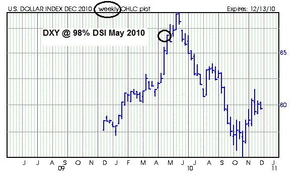 Dal 2006 un simile estremo ottimismo sul Dollaro si era registrato solo il 14 maggio 2010, successivamente la valuta americana si migliorò ancora segnando un massimo all’inizio di giugno, da cui subì però un ribasso superiore al 13% nell’arco di 6 mesi.