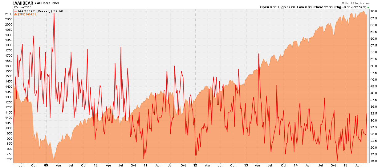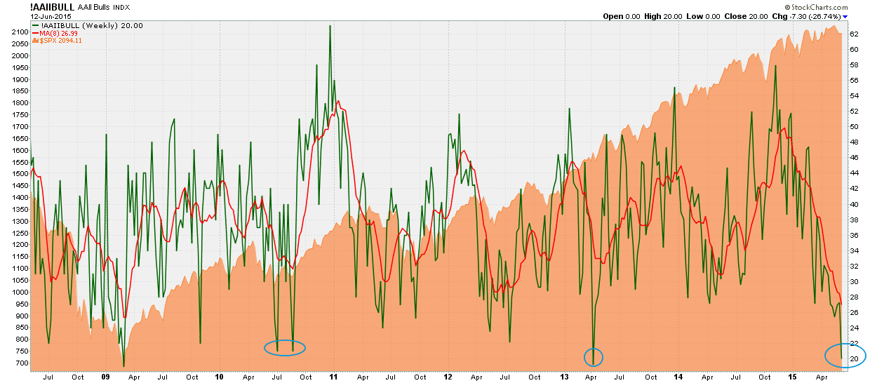 Il sondaggio AAII (American Association of Individual Investors) nell’ultima settimana, insieme alla riduzione dell’investimento in azioni e all’aumento del cash, ha mostrato un netto calo dei rialzisti, scesi al 20%. Si tratta del più basso livello dall’11 aprile 2013 quando i rialzisti scesero al 19,31%.
