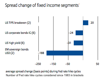 Non solo le obbligazioni high yield hanno registrato dei rialzi, con ovvia contrazione dei rendimenti, ma anche le obbligazioni governative emergenti hanno beneficiato di un calo dello spread dopo il 1° aumento dei tassi.