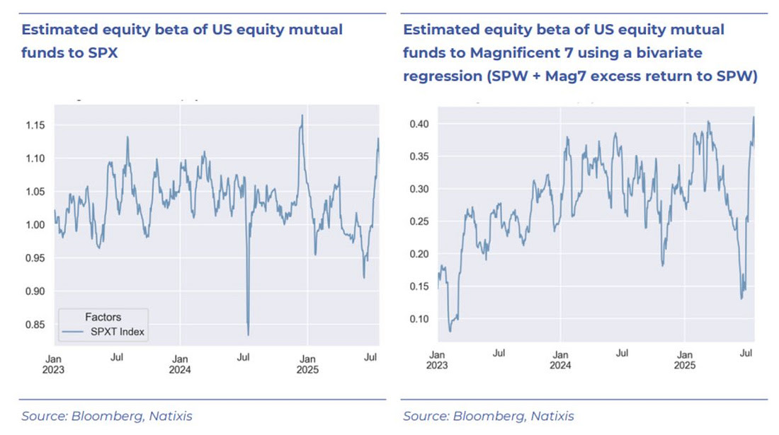 Altro segnale di rischio per l’azionario. Galleria Posted on 31/07/2025 by Paolo Calcinari Ansidei Secondo le stime di Natixis i fondi US hanno ricoscruito una esposizione elevata sull’azionario, in particolare sulle magnifiche 7. – Natixis estimates that mutual funds have rebuilt high stock exposure, and MAG7 in particular. Condividi: Email a link to a friend (Si apre in una nuova finestra) E-mail Stampa (Si apre in una nuova finestra) Stampa Condividi su Facebook (Si apre in una nuova finestra) Facebook Share on LinkedIn (Si apre in una nuova finestra) LinkedIn Condividi su X (Si apre in una nuova finestra) X Condividi su WhatsApp (Si apre in una nuova finestra) WhatsApp Condividi su X (Si apre in una nuova finestra) X Condividi su Tumblr (Si apre in una nuova finestra) Tumblr Condividi su Telegram (Si apre in una nuova finestra) Telegram Share on Pinterest (Si apre in una nuova finestra) Pinterest Mi piace Caricamento... Correlati